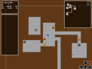 C言語は大学で学習する代表的なプログラミング言語ですが,その習得は容易ではなく,C言語の学習意欲と理解を向上させるための研究は多く行われています。ゲーミフィケーションと呼ばれる,ゲームの要素やデザインをゲーム以外の分野に応用し,その分野に対するユーザの意欲を向上させる手法もその一つです。本研究では,C言語のソースコードの構造や動作を模したダンジョンを探検することで C言語の理解を助けるRPG風ダンジョンゲームの開発を目的とし,その実現に向けて,ソースコードの内容に応じたゲームマップを自動生成するシステムを開発します。本システムではソースコードからフローチャートを作成し,その外形をマップとして反映させつつ,ワープなどのイベントやキャラクターを配置することでマップを作成します。本研究では,制御構造や関数呼び出し,スカラー変数の宣言といった C言語の基本的な構文要素に焦点を絞ったシステム開発を行い,それらを反映したマップを作成できることを示しました。また,デバッガと連携させることにより,作成したマップの内部をプログラムの動作を理解しながら探検するゲームの開発を行っています.